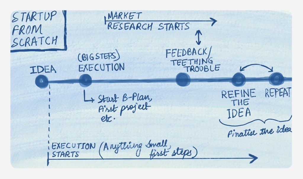 Sharing a few things I have learned from my experience as well as other business owner’s experiences. Below is a consolidation of my learnings (incorporating my shortcomings as well) about a Startup’s ideal journey from “Scratch.”